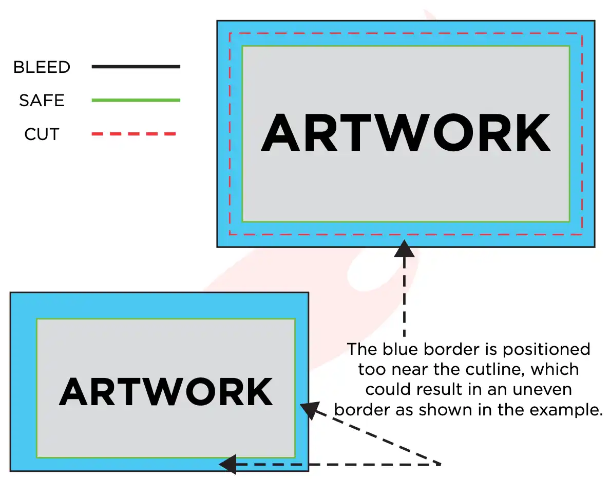 While we generally advise against using borders in designs, if you choose to include them, it's important to be aware of a potential issue. Borders positioned close to the cutline may end up looking slightly off-center after trimming.