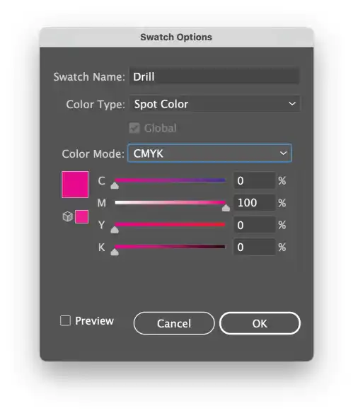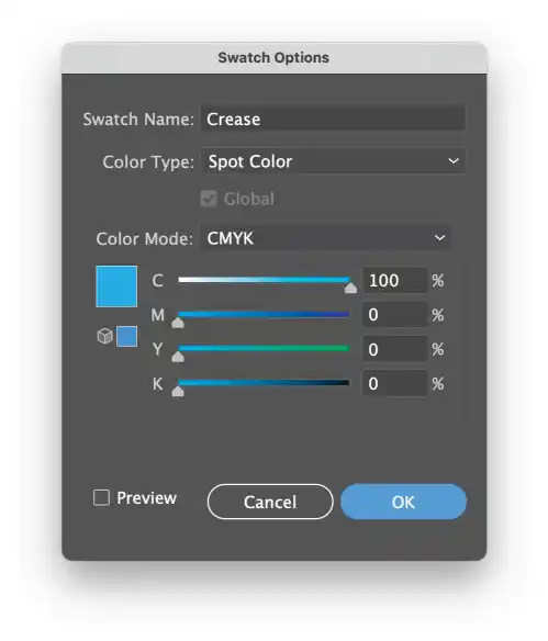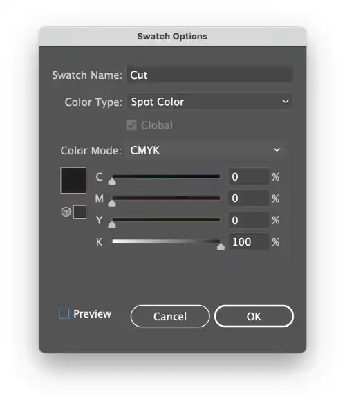 - Swatch Creation: For cut lines, create a new Swatch with the following settings:
