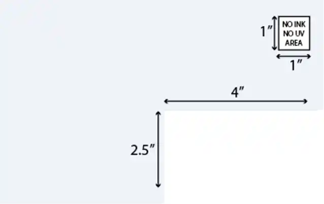 The addressing panel in the lower right hand corner needs to be a blank, white space measuring 4” wide by 2.5” high. The upper right hand corner will have the indicia printed on the artwork measuring 1” by 1."